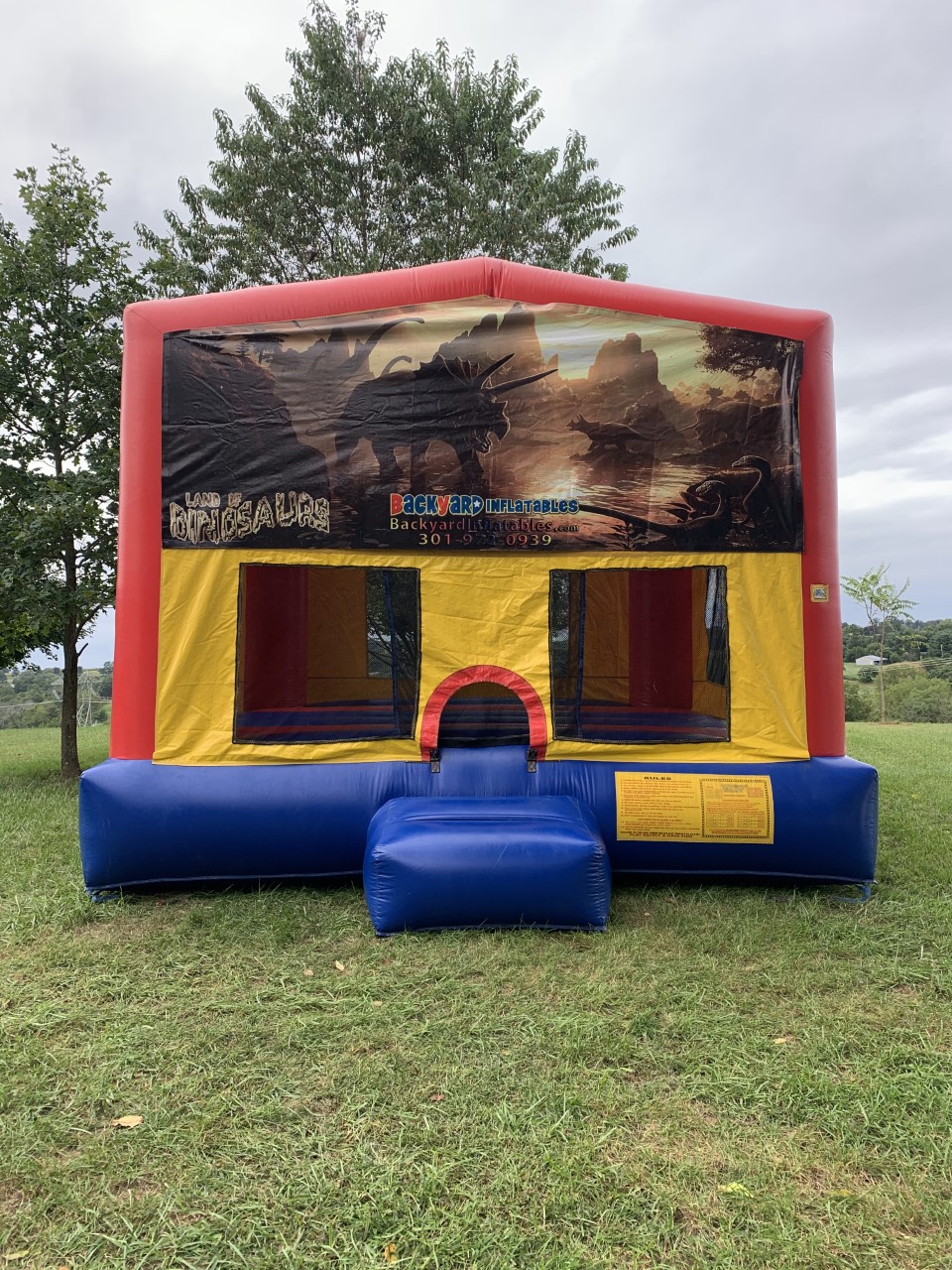 Looking for a standard bounce house? These units have a 15ft by 15ft jump area! Our modular moon bounces are blue, yellow, and red, and can be interchanged with any banner!